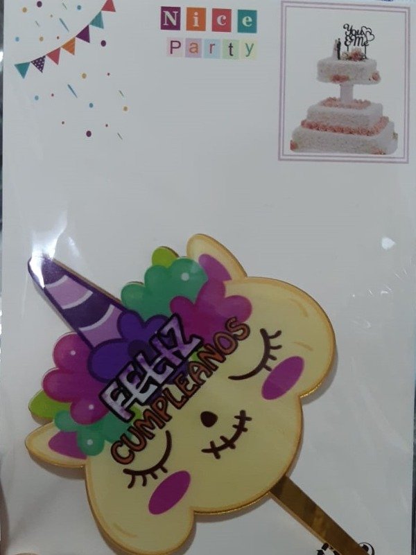 Topper dorado feliz cumpleaños unicornio