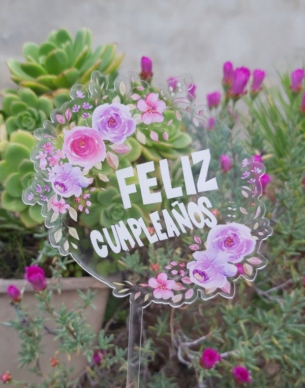Topper feliz cumple cristal (floral)