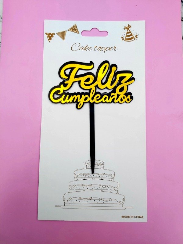 Topper feliz cumple dorado/ negro cursiva