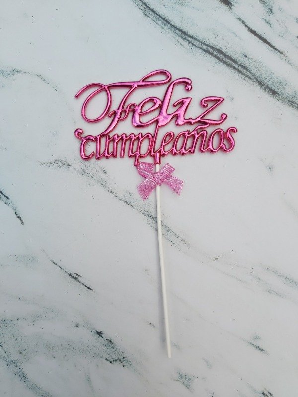Topper feliz cumple rosa fuccia cursiva