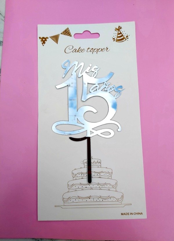 Topper mis 15 plateado cursiva